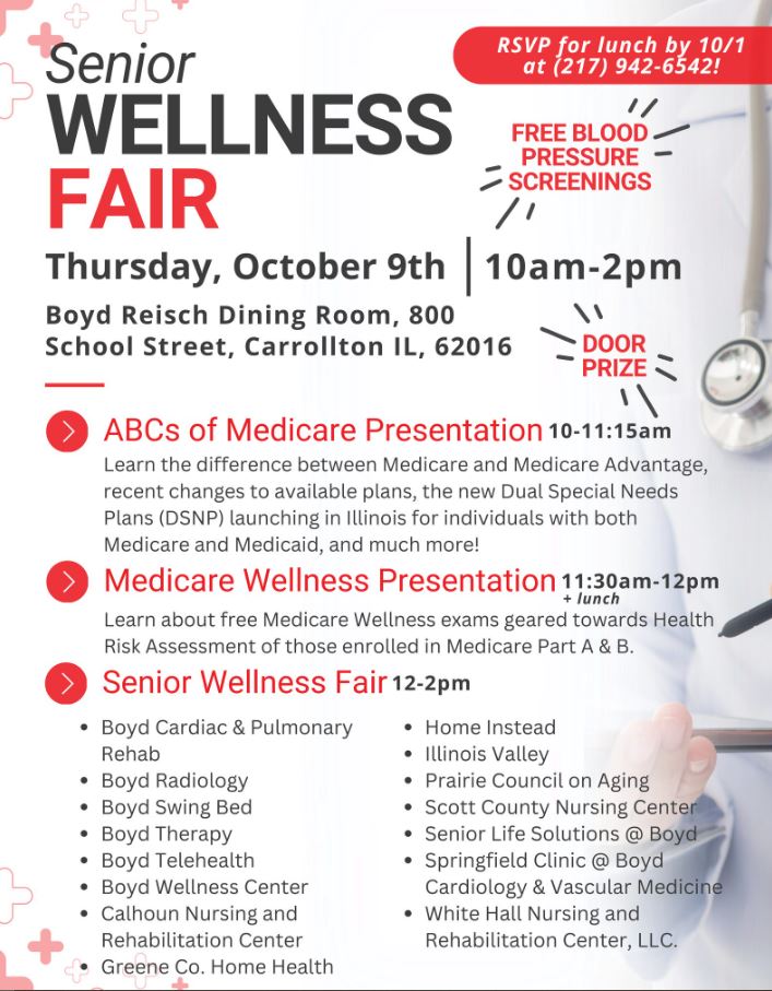 in the Boyd Reish Dining Room: Learn the difference between Medicare and Medicare Advantage plans. Learn about Wellness Exams and more!